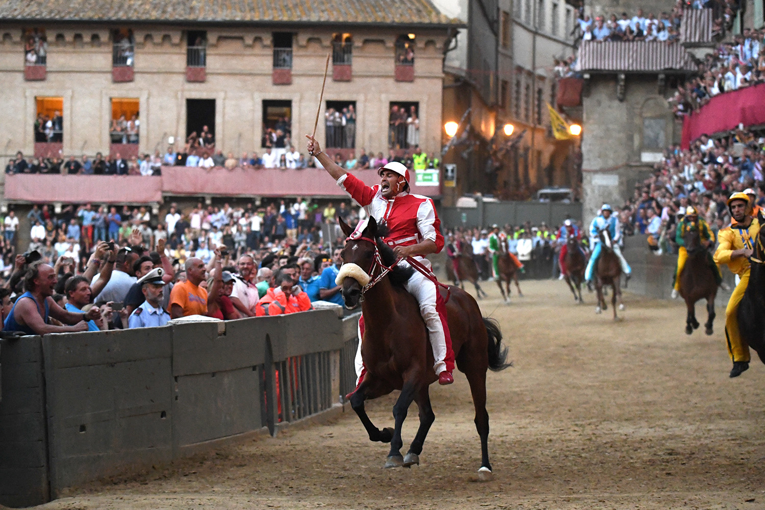 On the night of the race speed is everything: the winner is the horse who finishes three laps of the piazza first, with or without his rider!
