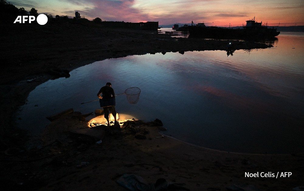 A fisherman stands on the banks of China's largest freshwater Poyang Lake in Juijiang, China's central Jiangxi province on August 23, 2022.