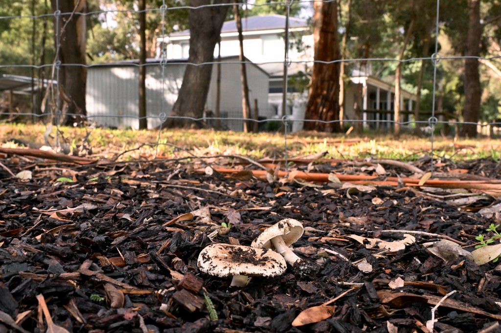 Des champignons (photo 2) poussant près de la maison d’Erin Patterson à Leongatha, le 20 mai 2025. © William West / AFP