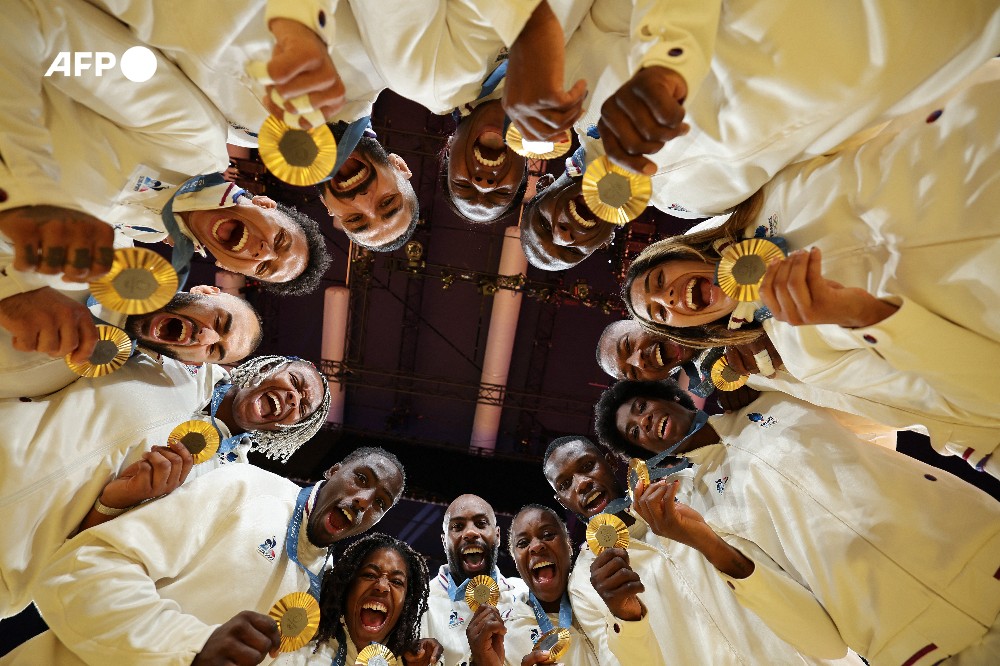 Os judocas franceses comemoraram o título olímpico por equipes mistas contra o Japão no dia 3 de agosto, graças sobretudo às duas vitórias de seu astro Teddy Riner.