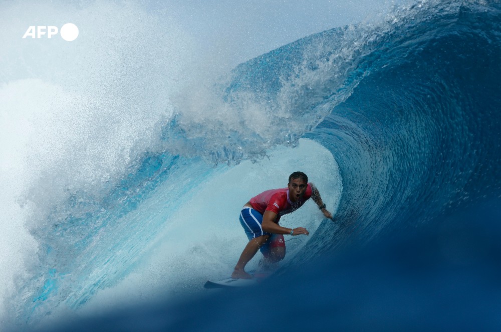 O taitiano Kauli Vaast domou a onda de Teahupo'o para se tornar o primeiro campeão olímpico francês na história do surfe, na madrugada de 5 para 6 de agosto.