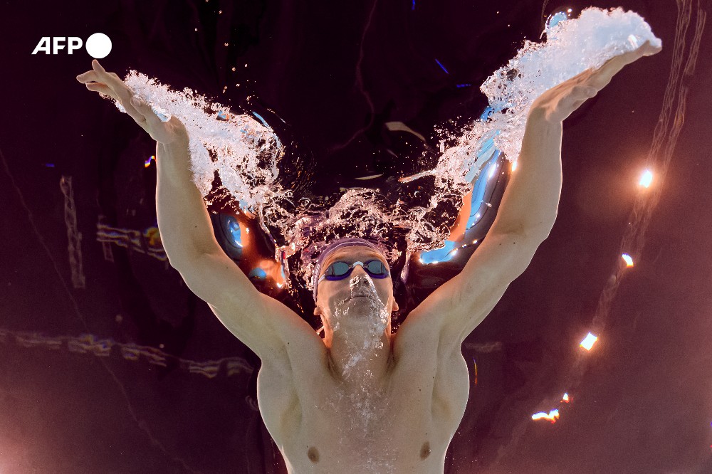 O campeão francês foi fotografado por Oli Scarff, que tirou uma foto subaquática que ilustra o poder propulsor dos braços de Marchand durante a semifinal dos 200m borboleta, em 30 de julho.
